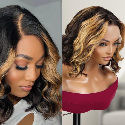 UpScale 100% Human Hair Glueless Pre Plucked 13x4 Lace Frontal Wig Edge Blonde Highlight Wavy Bob 12" - 12" is backordered and will ship as soon as it is back in stock.