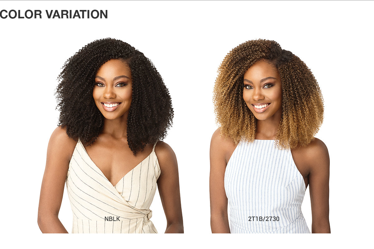 Outre Human Hair Blend Clip on Weave Premium Purple Pack Big Beautiful Hair Clip-In 4C Coily Fro 10" 9Pcs - 2T1B/RDCP is backordered and will ship as soon as it is back in stock.
